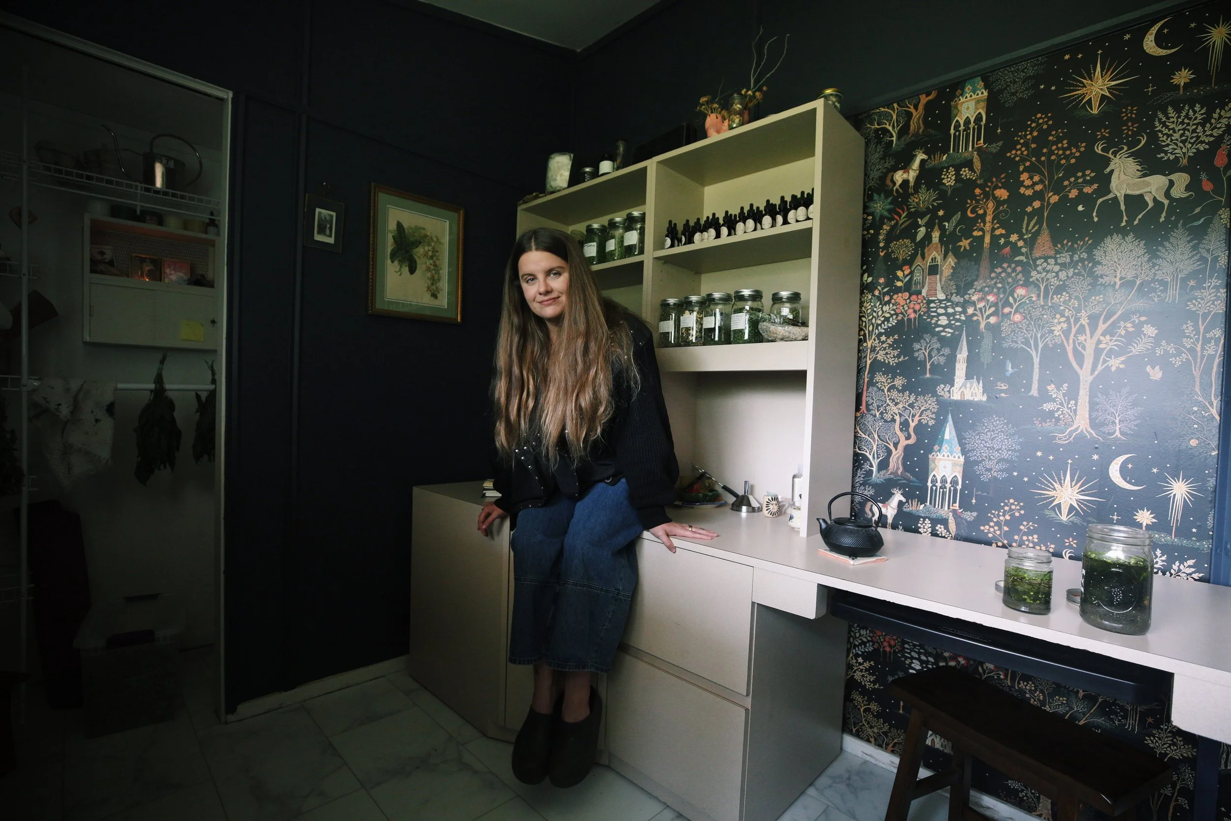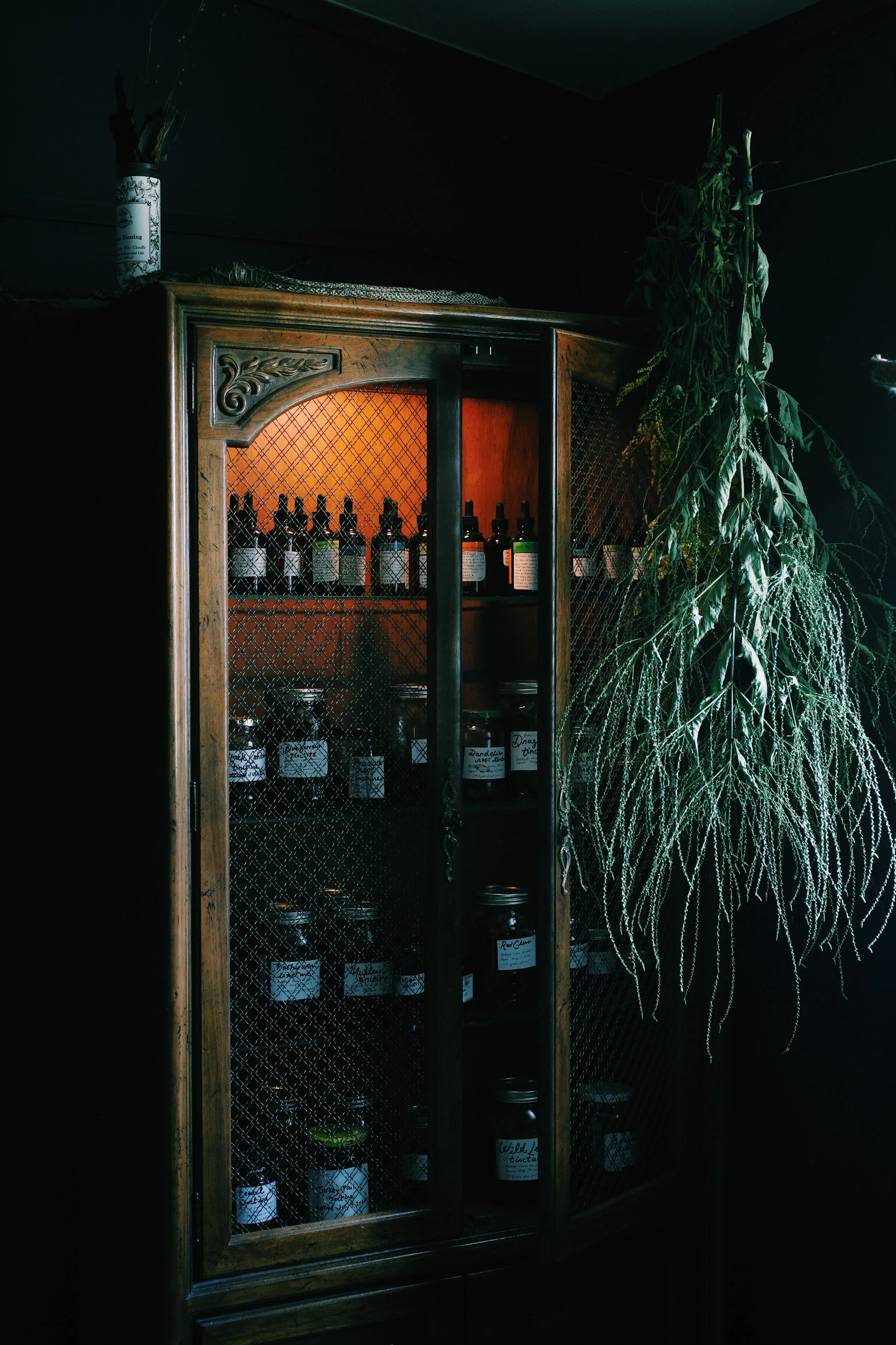 The apothecary has become a space where I can pour tinctures, talk to my rabbit, hang herbs, and tend to grief of all kinds. It has easily become my go-to space for slow healing and the messiness of nonlinear time.
